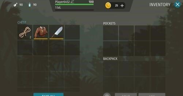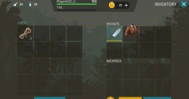 得到补给箱里面的刀、绳索和服装,咱们用手指头按着它们,将它们拉动到右边的上半部分,空格中,这儿就是我们能够放物品之处。