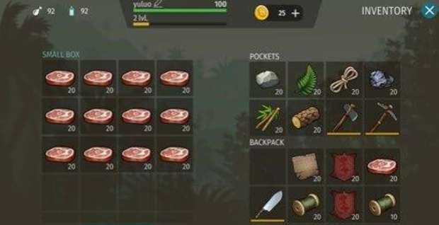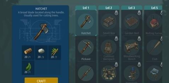 基本原料能够建造斧头、铁镐、长枪,如此外出狩猎或挖矿升级会相对轻易,等咱们升至二级后就能建造木箱和挎包,以后就能扩充货仓里面的物品。
