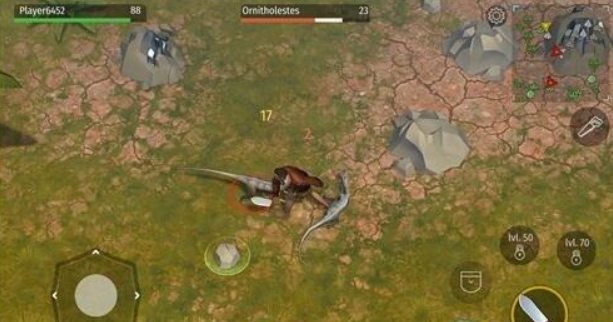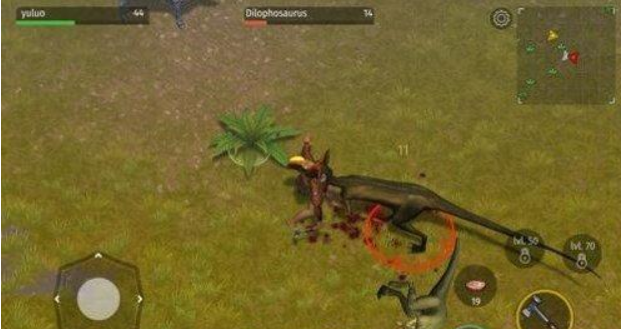 尽管在缓冲区但还会遭受较小恐龙的攻击,这时候游戏玩家直接点一下攻击按键,用刀击倒就能杀掉恐龙。