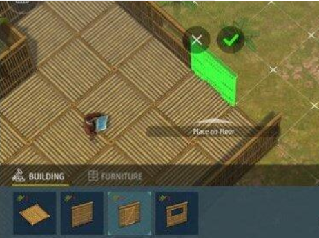 在缓冲区要搭建1个屋子首起先要选择首先木地板,随后点击屏幕中的空缺区域,等上边呈现翠绿色标志后,点一下对号选择项,随后安排好木地板,当地底铺设充足的木地板后,咱们再来一次安排墙上和铝合金门窗等。