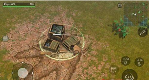 点击屏幕右下方的捡得按键便是手掌的图案,而不会是握拳样子的攻击按键,这个游戏玩家要分别好,捡得按键能够检索补给箱。