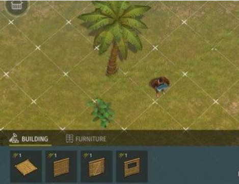 等搞好了房间就能在四周搜集种种原料,以后就可以开启建造简易的道具,点击屏幕正下方3个按键的中央1个是建造道具的按键。