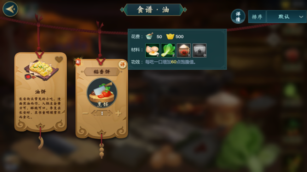 最后就是稻香饼的制作,制作时青菜剂的腌制并切细,腌制的功能在烹饪界面的左下角,捞出腌制好的青菜后,放到旁边的菜板上切,之后再把材料一起加入油锅,一道稻香饼就做好了。
