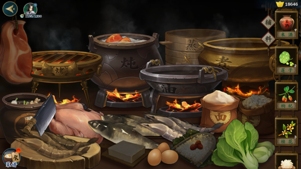 制作葵花斩肉的材料很简单,就是虾,鸡蛋,井水和猪肉。虾和鸡蛋可以通过在游戏地图上采集,或者是做主线及支线任务得到,另外在杂货商的地方,通过刷新也可以刷到虾和鸡蛋,水和猪肉可以直接在附近的烹饪商人处购买。