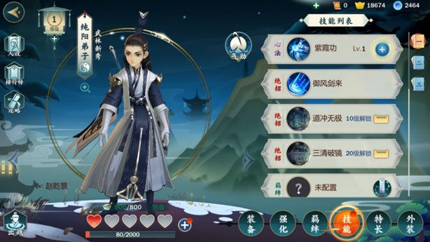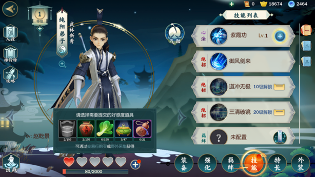 纯阳弟子解锁方式:通过主线任务之后,使用羁绊任务累计好感度获取。