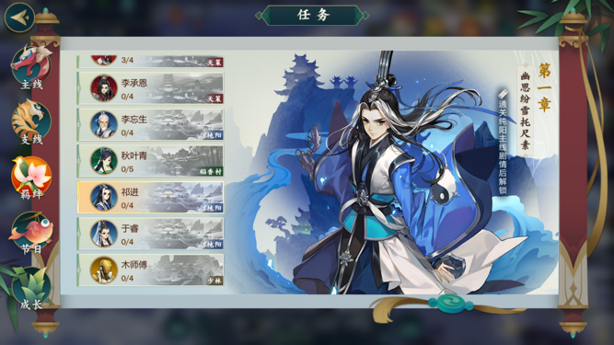 首先能进行羁绊任务的纯阳弟子角色是祁进,完成纯阳主线任务之后就能开启祁进羁绊。祁进的输出能力非常强,控制力好也比较机动,但防御差,是个刺客类的角色。