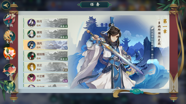 纯阳弟子羁绊任务解锁顺序:纯阳弟子,祁进,于睿,李忘生,洛风。
