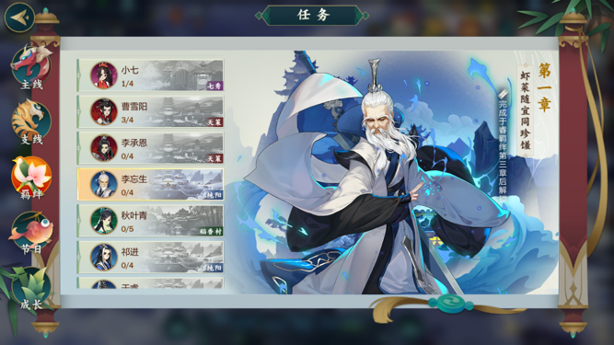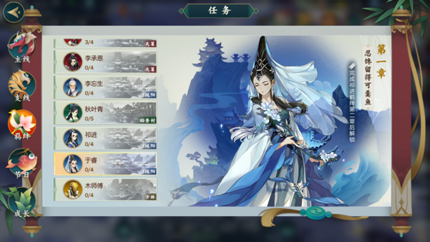 解锁纯阳弟子之后,需要解锁的就是纯阳门派的其他角色了,解锁其他角色需要对角色达到一定的好感度,好感度可以通过礼物赠送获得,但最快的方法是通过羁绊任务增加,完成每个任务可以增加200点好感度。