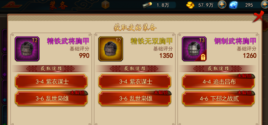 PS:“更好装备”里面有轻易的渠道能够指导各位主公去相对应关卡。