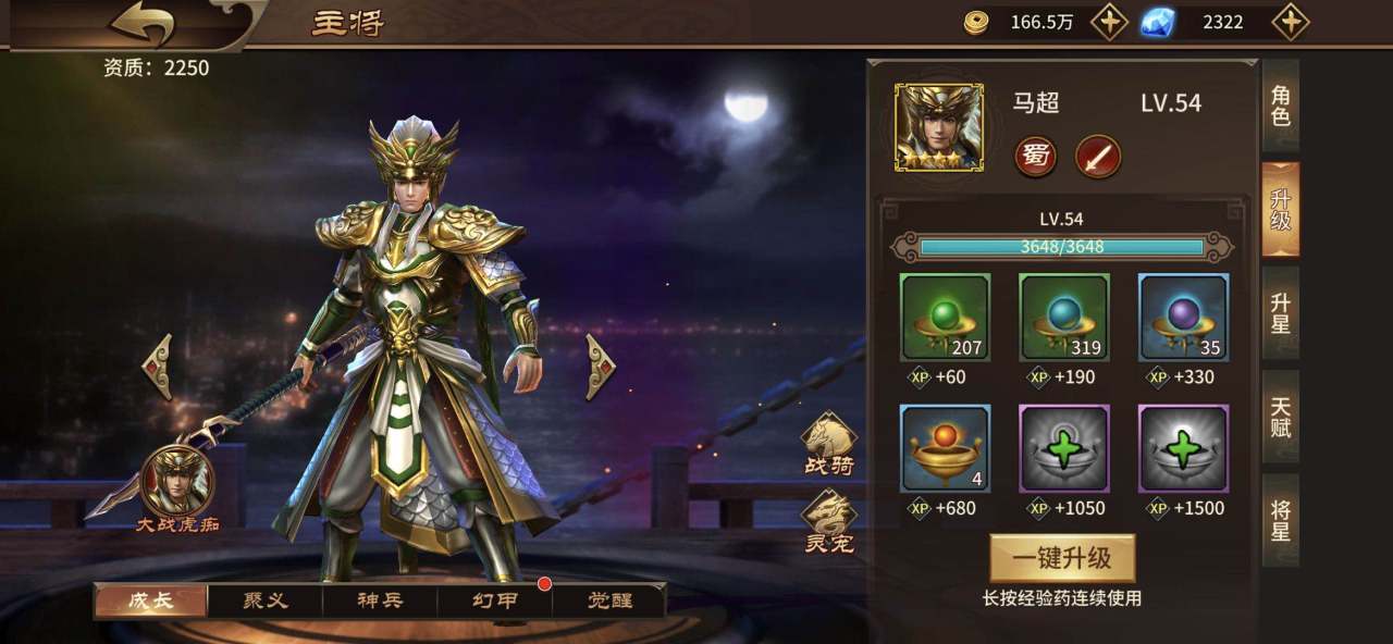 2、后期武将角色升级经验量较大,都是需要经验丹升级,在经验丹存储还是得注意。