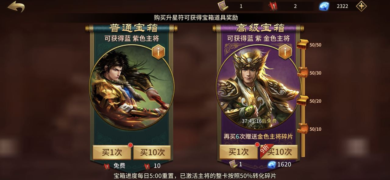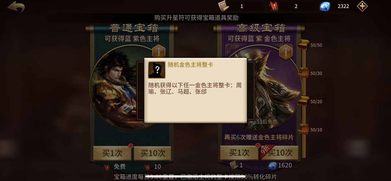 2、使用高级宝箱卷,对于抽取机率,小伙伴可以尝试了解规则,十连抽的价格是可以便宜点的10次抽取可以获取橙色角色的碎片,抽取积累10次20次最高50次都有相应的角色卡片奖励。