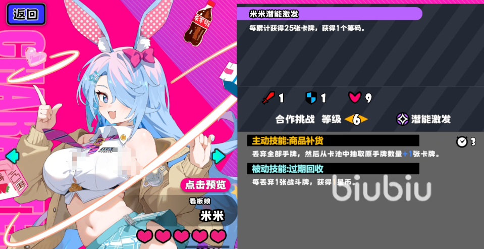 米米:这个角色的作用是用大洗小,简单来说就是在战斗的时候优先用费用比较高的战斗牌,费用低的牌就留着洗掉。拿到的筹码和星级是相关的,核心筹码推荐银行卡、八面骰、电池。