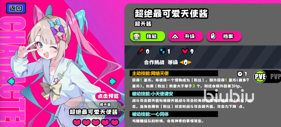 超绝最可爱的天使酱:这个角色一心同体,和糖糖共享被动,也就是说超天酱挨打的时候可以给糖糖叠被动,而糖糖打人可以给超天酱积攒粉丝,粉丝打糖糖也可以享受到超天酱的减攻击,两个角色一起出有70%的强度。核心筹码选取和侦探这类一个模板就可以了。