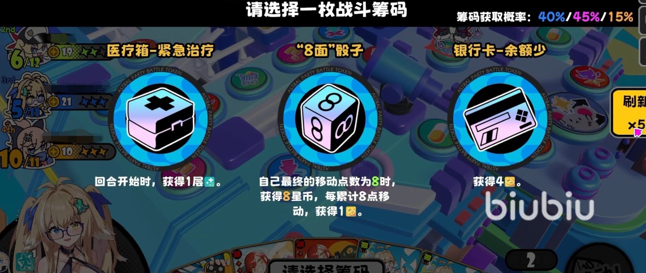 【虚弱印记】这个技能会标记一个怪物2回合,被标记的怪物一旦受到伤害,其伤害点数会加1,如果被标记期间,该怪物被击倒,那么蓝海晴能得到3星币。被动技能为【幸运点】,要在自己的移动点数为6的时候会触发,也就是一到骰子为6点,即可得到6星币。