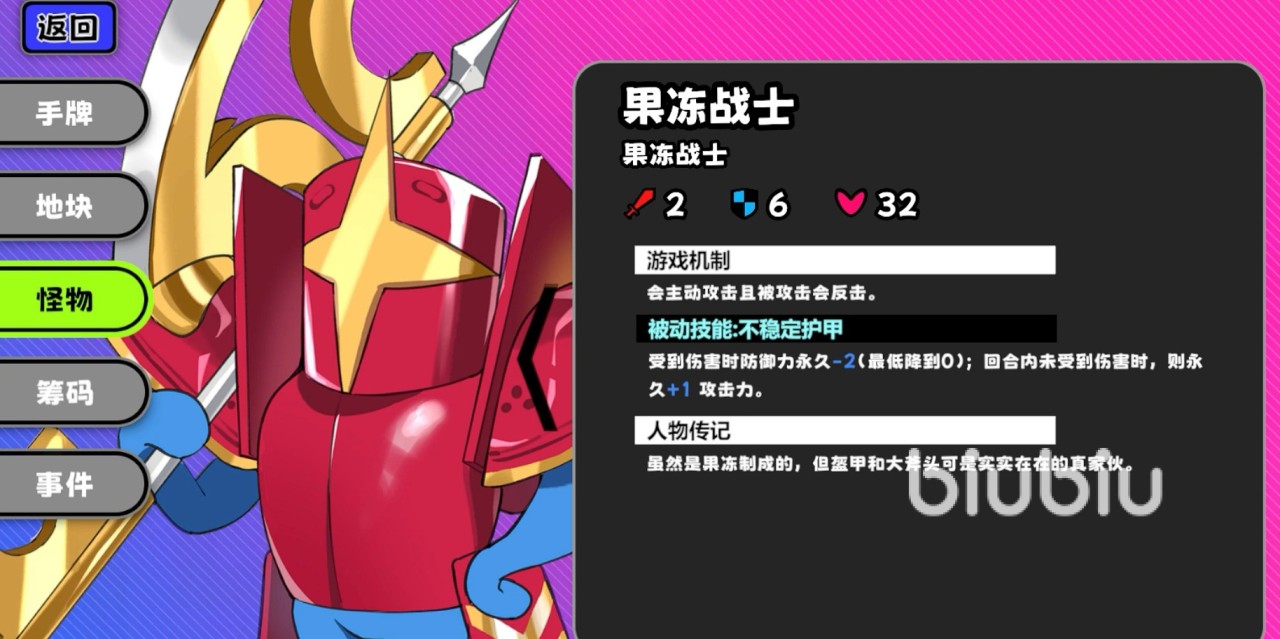 进入魔法学院后,玩家会看到此处地图是在图书馆外面的,这里守着一只果冻战士与三只魔法茶壶,小编先来说一说怪物的属性,守大门的果冻战士有着较高的防御力,但是受到伤害的话,其防御力就会降低一直到0为止,如果是事件增加的防御力则不会被扣除,若是一个回合内没有受到伤害,那么就会永久增加攻击力,因此建议小伙伴们要每个回合都打它一下,防止攻击力叠加,但是击败果冻战士并不能带来星币。