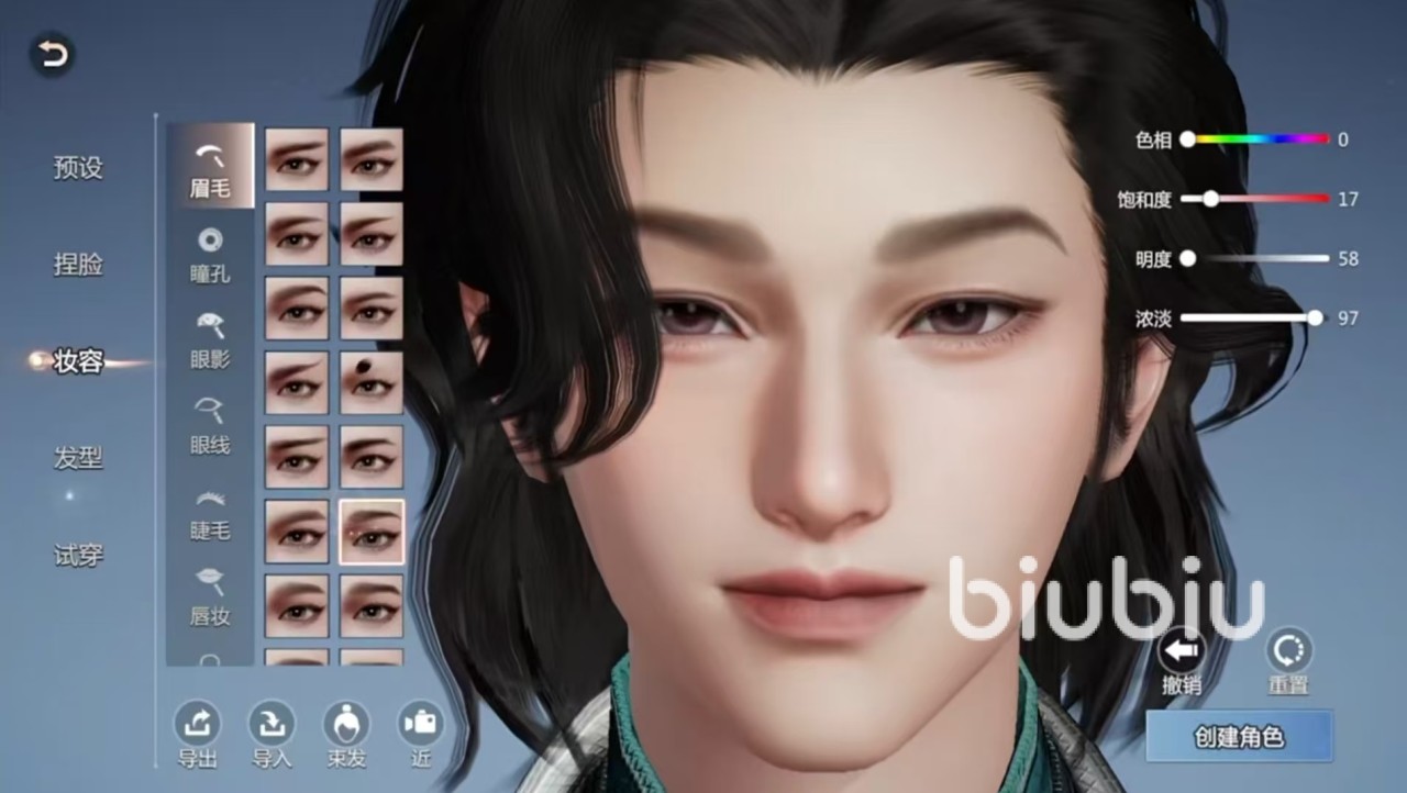 仅仅是一个鼻子,就拥有整体、鼻梁、鼻骨、鼻头等多种各种的细节,每一个中还有更细微调整,通过这一系列操作就能打造出一个自身的专属角色了。在捏脸完成之后并不算结束,后续还有妆容、发型、时装试穿的,只有将这些全部完成之后,一个角色才算打包完成。游戏还打造了专属妆容系统,包括添加刀疤或者是胡茬等,这些装饰可以展现出不同人物的气概。另外每个门派还有专属的装饰,与自身选择的门派能相互配合起来。
