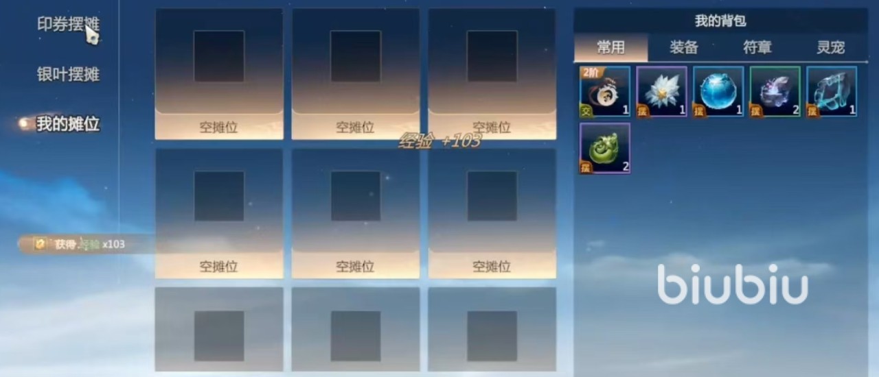 在游戏主页面的上方可以直接看到摆摊按键,如果背包中有可以进行交易的物品,就可以直接点击摆摊。摆摊的时候分为不同的摊位,包括印卷摊位和银叶摊位,不同的摊位出售的物品道具当然也是不一样的。大家选中我的摊位后,直接就可以在我的背包中看见当前所有可以上架的物品,点击要出售的物品之后,选择好相应的价格就可以直接上架了。