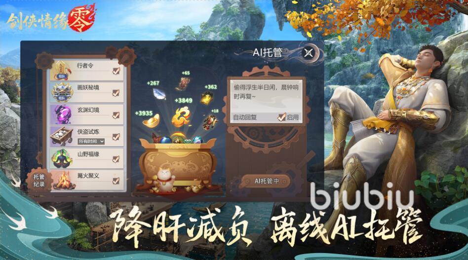 《剑侠情缘零》是一款主打休闲和碎片化利用的剑侠网游,游戏里面设置了许多系统,都是为方便时间不多的玩家,让玩家充分体验游戏的核心玩法,比如智能托管,玩家没时间就可以使用这个智能托管,帮助完成各种任务,获得经验,完全将自己的双手解放,可以一边工作一边解决繁琐的任务要求,玩法上是充分减负,玩家把更多的时间投入到战斗和日常的“行侠仗义”上即可。