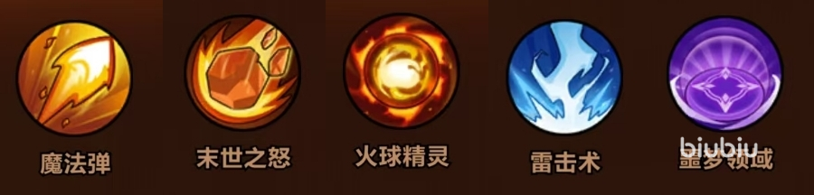 技能选择:魔法弹+末世之怒+火球精灵+雷击术+噩梦领域