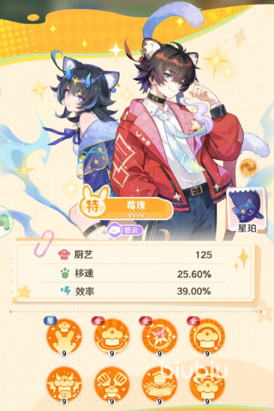 莓瑰是一对姐弟,姐姐温柔且神秘,真身为变异体蓝莓猫,弟弟冷漠但单纯,真身是草莓猫妖,皮毛像是草莓一样诱人,他们的技能能在制餐时提升所有店员包括自身的厨艺,尤其同样是悠云的,提升的量会更加惊人。