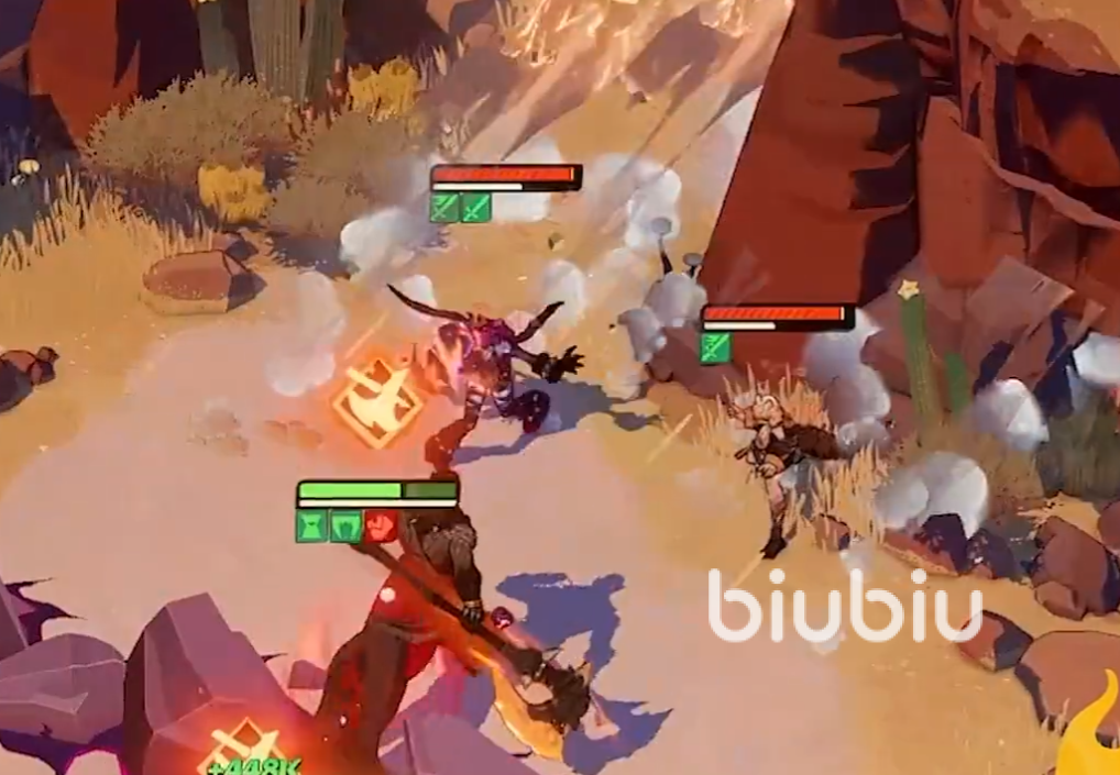 必杀技“巨斧劈杀”,他拥有一把巨斧,可通过蓄力砸出斧头,砸向敌方目标所在的格子,破坏以敌人为中心一定范围内的阻挡物,并让范围内的敌方单位受到伤害,同时将对手击飞一段时间,大开大合的战斗风格。