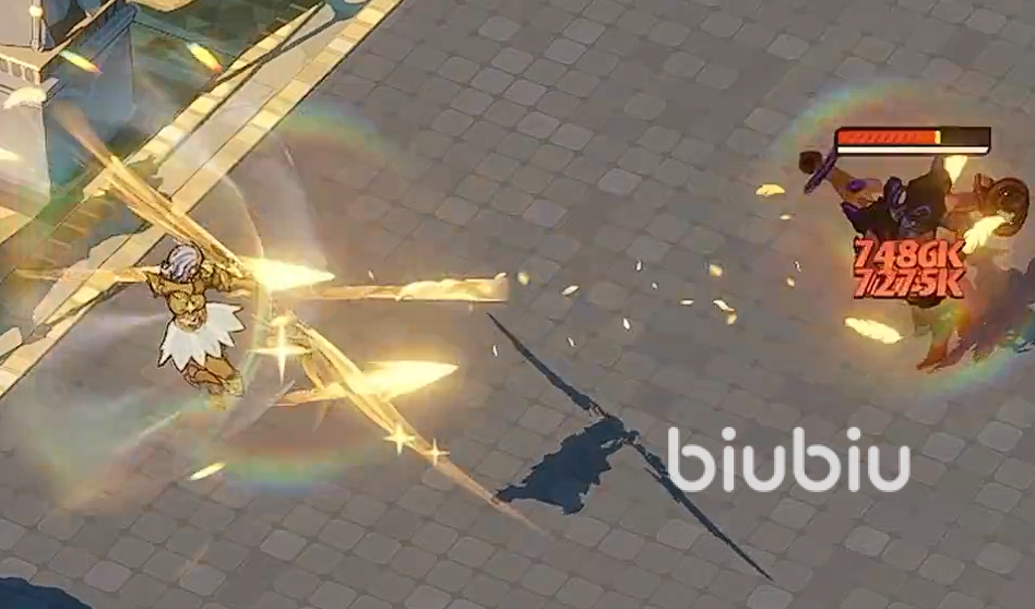 过程中自身会处于无敌状态,然后是她的小技能,这第一个技能可以让其在战斗中锁定最远距离的敌人,然后对该敌人进行攻击,攻击过程中己方其它单位的速度还会得到提升,这技能的话是一个专攻敌方后排的技能。