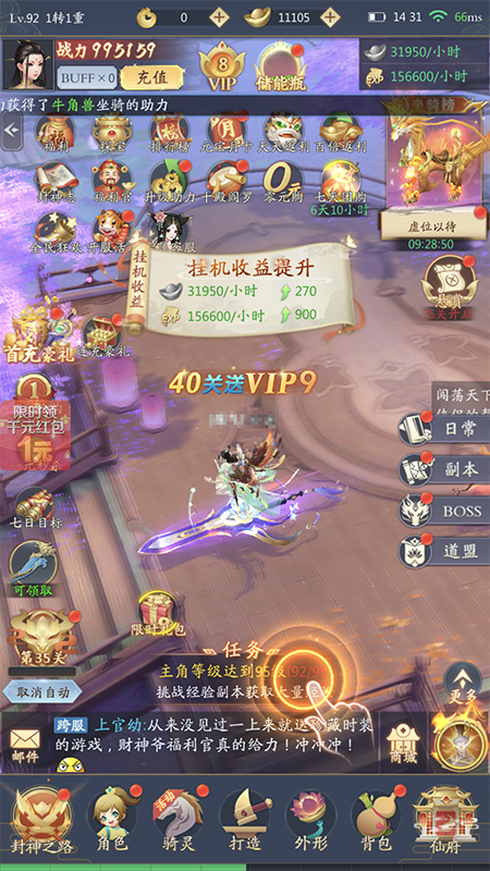 主线关卡要想获取更多的经验,一方面是提升自身的战力值,通关更多的关卡,提升每小时的挂机经验收益。另一方面,是充值提升自身的VIP等级,SVIP2级可以多购买一次关卡快速扫荡的次数,额外获取8小时的挂机经验值。