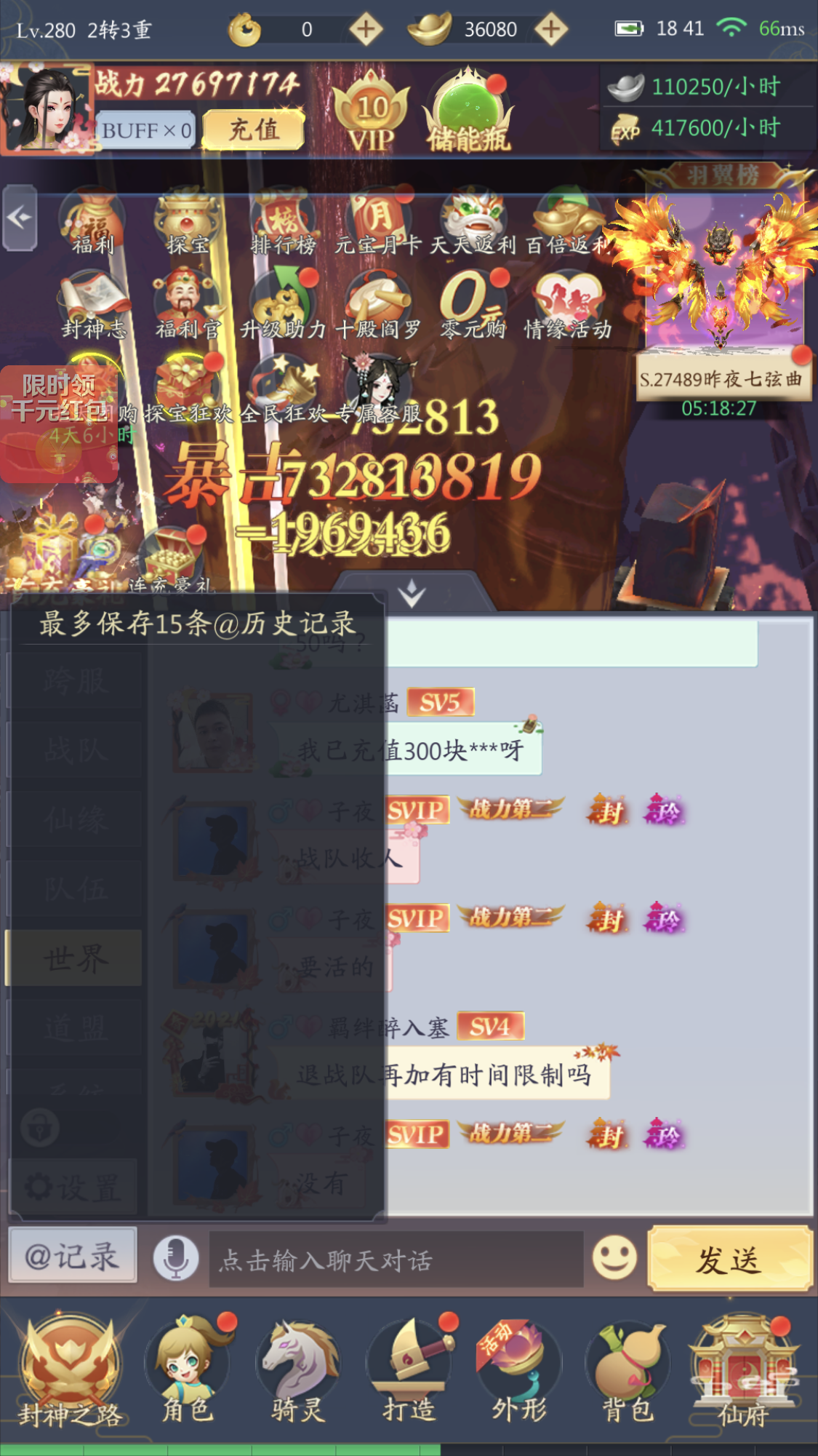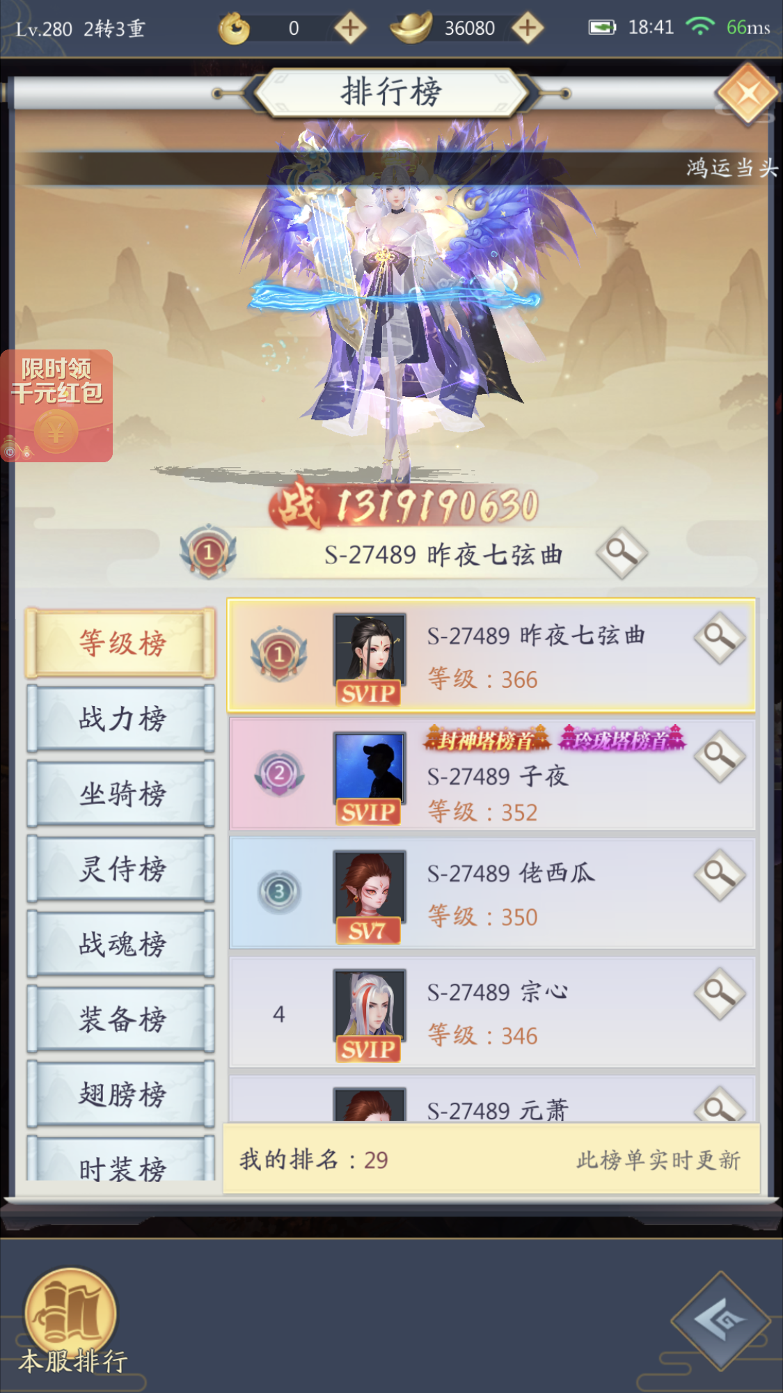 除此之外在道盟和战队中都没有搜索的功能,只能下滑成员列表来进行查找。或者可以在排行榜中通过下滑各个榜单来搜索自己要找的玩家。榜单有很多个,有分为等级、战力、坐骑等等,在游戏刚开始的阶段只开放本服榜单,后期还会开放本区的榜单,能查看的玩家的范围就更大了。