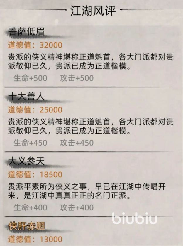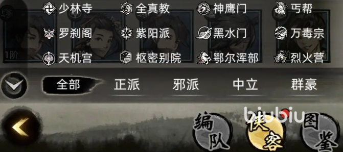 角色方面的话,建议各位先去玩玩正派流派。游戏中的正派很强,在前期阶段有有着压倒性的优势且成长较快,人缘较好,容易成型。不过不要玩少林,目前为止少林的数据和实力不是很强,即便前期运气不错,抽到了好的少林卡,也建议不要培养到了中后期作用不大。
