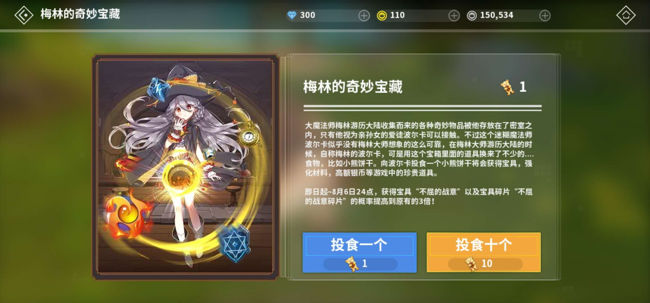 第一步,玩家可以通过每日的活动签到,来获得一定的奖励,当玩家获取当小熊饼干的时候,那么就可以去梅林的商店里面,给梅林孙女进行投食,就能获得一定概率的宝具任务。