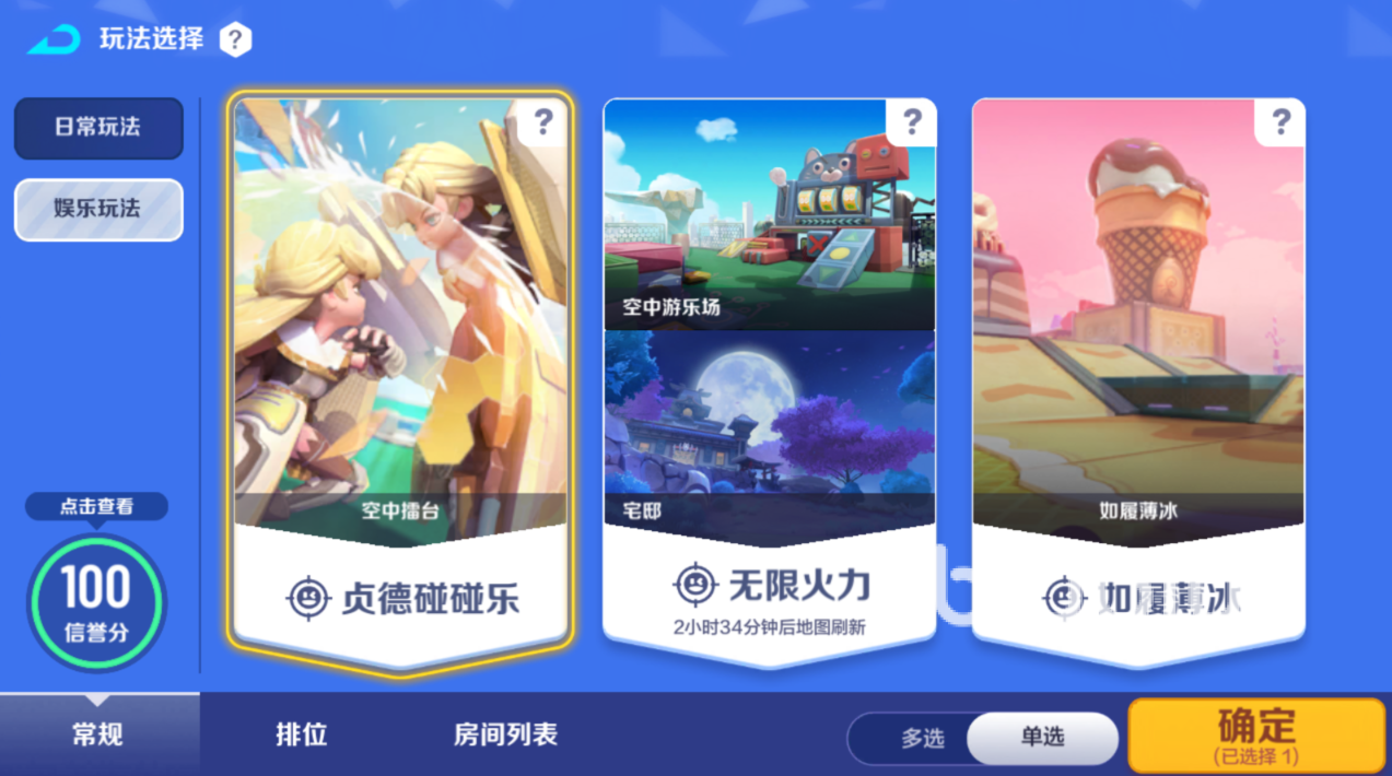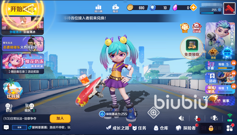 新手玩家选择英雄开始游戏,最初场景只是勋章争夺赛,随着组队不断参加比赛获得道具奖励,其中最主要的是战斗力和等级提升,当玩家等级迅速提升后会激活不同场景,比如当玩家等级到达6级时,即可开启日常任务和比特城场景。当玩家等级到达8级时,解锁娱乐玩法,场景增多,玩家的挑战方式也不断增加。