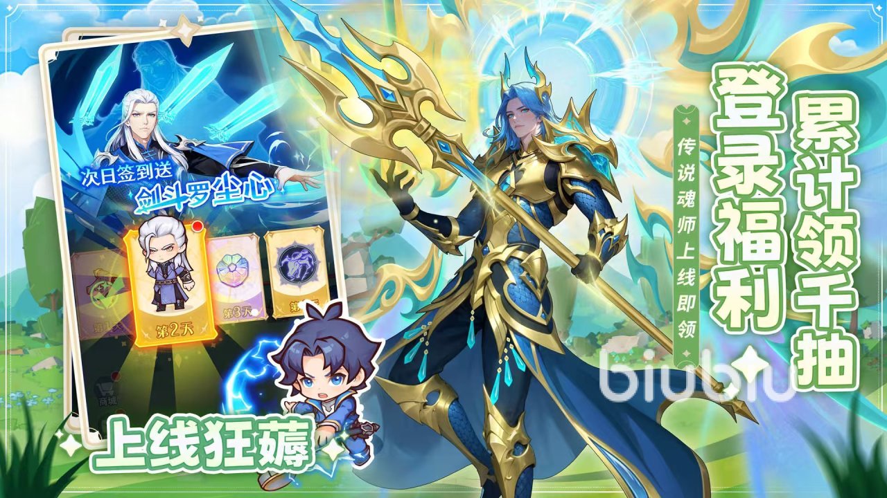 在福利方面也是诚意满满,在正式开服之后只要登入,就能够直接获得七宝琉璃中的最强战力剑道尘心,开局就能得到巅峰战力。尘心的魂技万剑归宗特效直接拉满,帮助玩家快速推图度过前期开荒阶段。除此之外还有每日赠送红卡等设定,零氪玩家也可以免费获得戴沐白、唐三小舞等超人气角色,轻松组建属于自己的顶级战队。