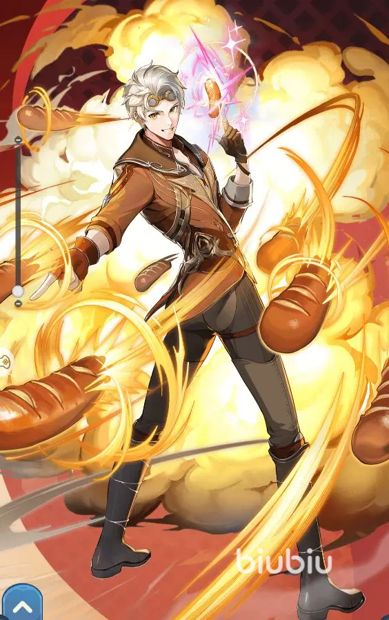 被动2会在队友受到致命伤时立即触发,恢复基于其自身500%攻击的血量。被动3则会在战斗前派发香肠,每个队友可以随机得到1种香肠,解毒肠的可以免疫所有异常状态,飞行蘑菇肠获得1回合飞行能力;亢奋粉红肠提升15%攻击力;水晶毛虫肠持续治疗1轮;极限墨绿肠15%伤害加成1回合。主动技对队友施加回复肠,恢复友方生命上限16%的生命值。