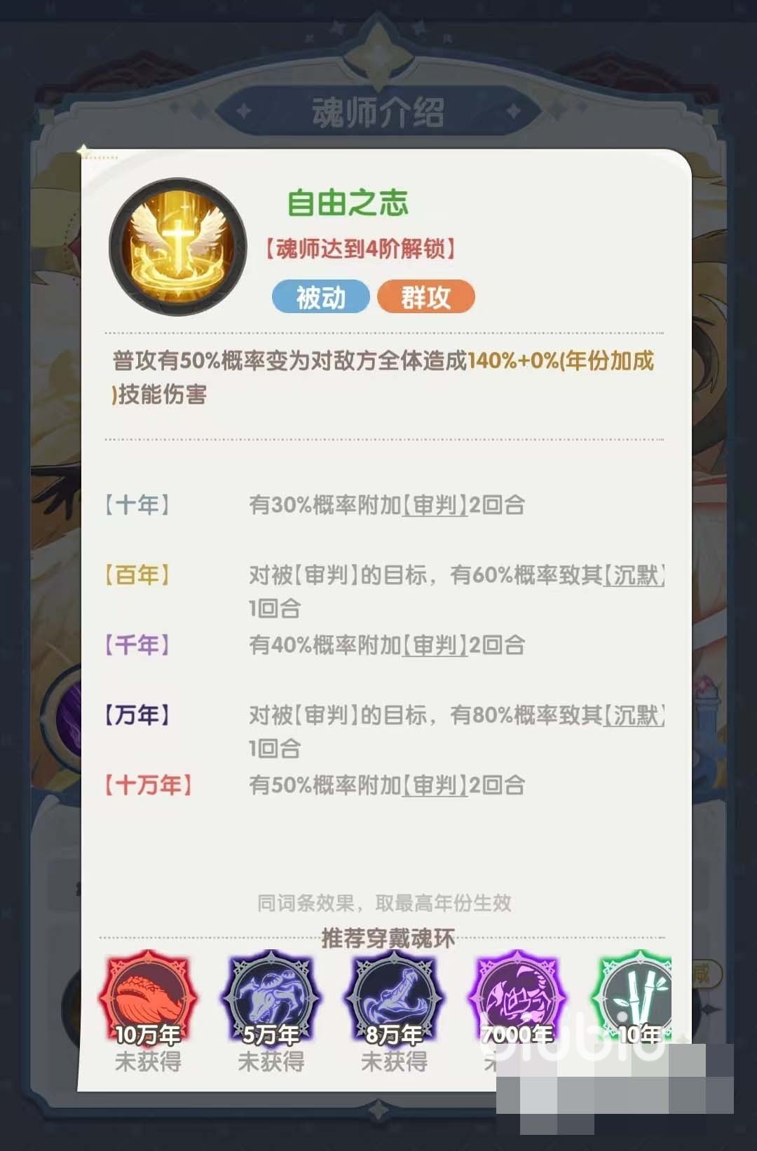 被动技能【自由之志】其有概率附带的审判,可以让对手可能出现沉默情况,造成对方在无法实用技能,只能使用不普通,就让千仞雪能作为控制型的魂师,当然,该技能在战斗前还能为自身以及两个随机队友附带额外的护盾保护,又增加了防御性的属性。