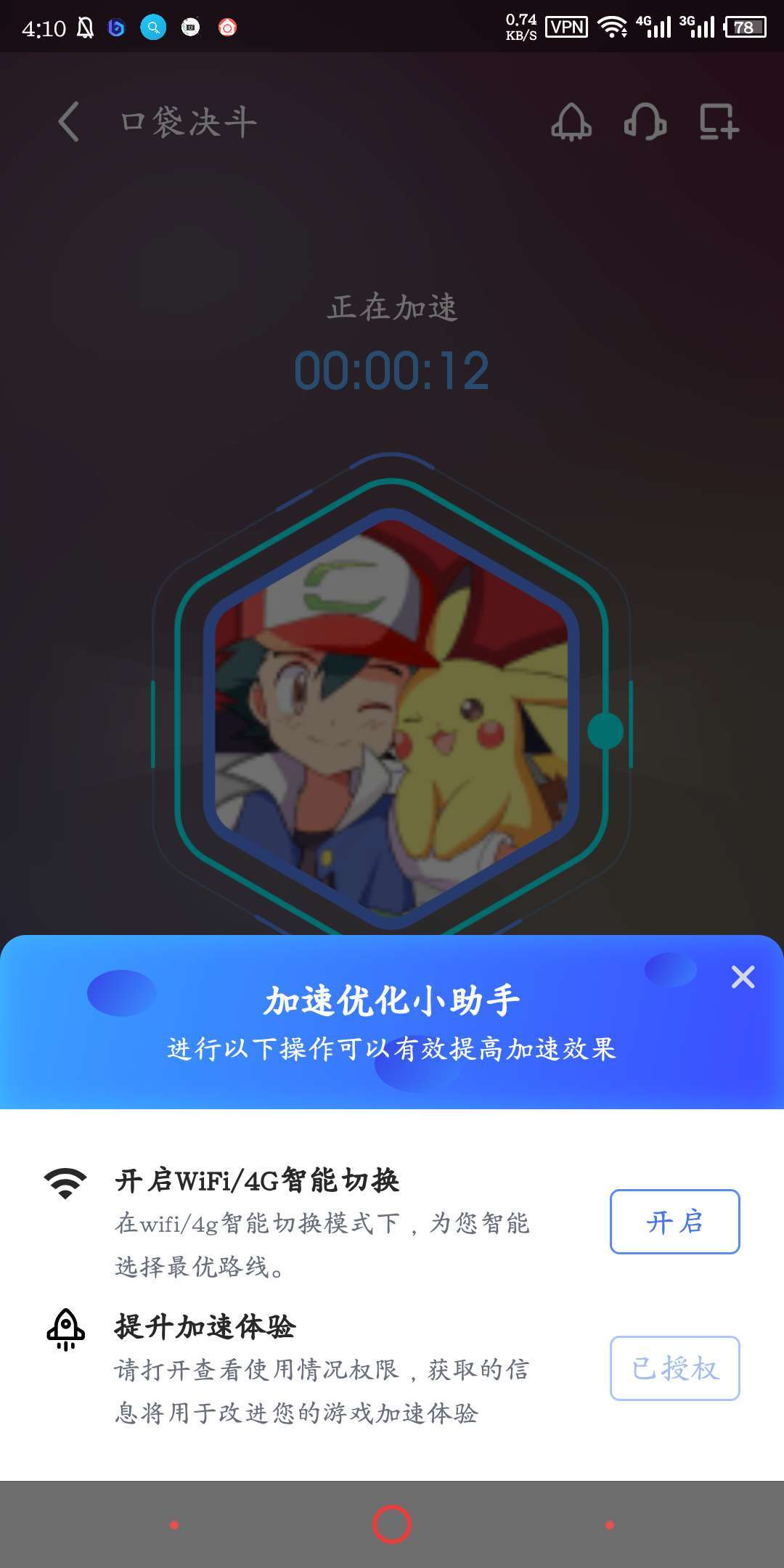正在加速的页面中,玩家除了可以查看VPN地址及加速情况之外,还可以通过加速优化小助手改进玩家的游戏加速体验。