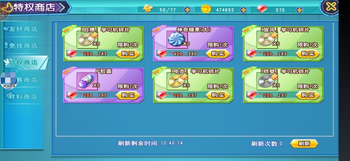 神奇糖果(大)需要vip达到1级,原价400颗红钻只需390,。这些东西都是每隔一定的时间刷新的,都会有相应的折扣,玩家们可以去看看。