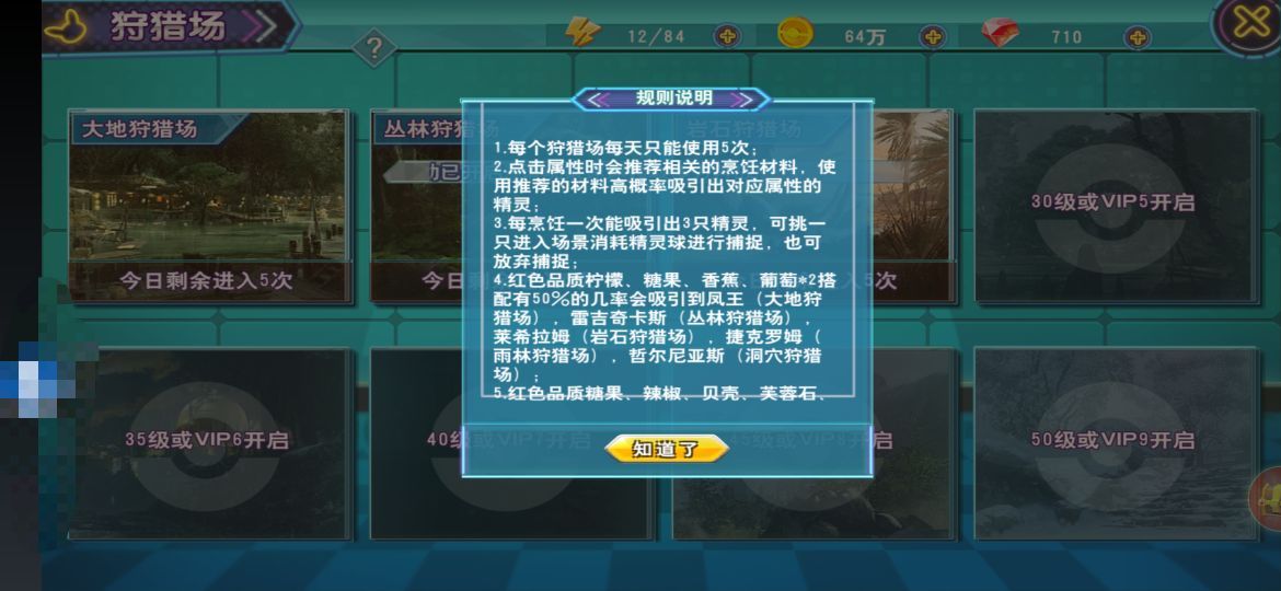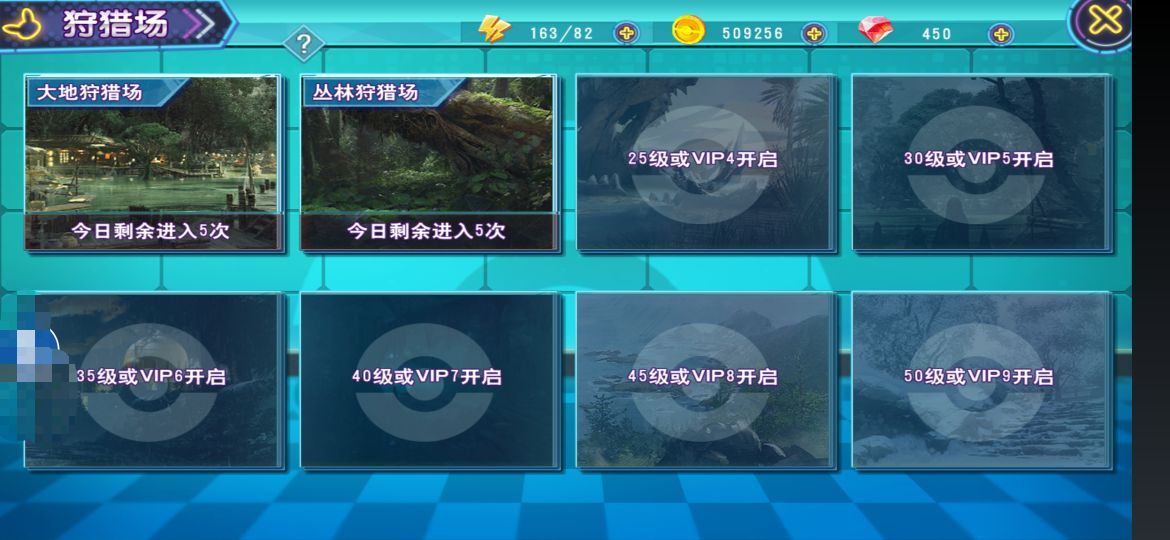 玩家们需要达到一定的条件进行解锁,狩猎场分为大地、丛林、岩石、雨林、洞穴等狩猎场,这些狩猎场又需要玩家达到一定的等级才能进行解锁,vip玩家达到一定的等级即可解锁进入。