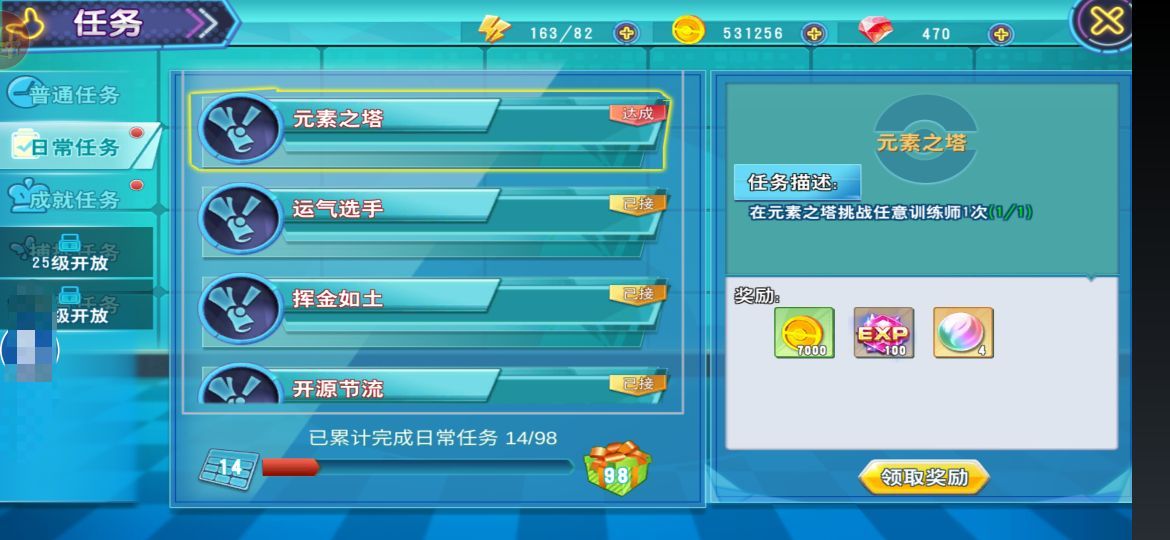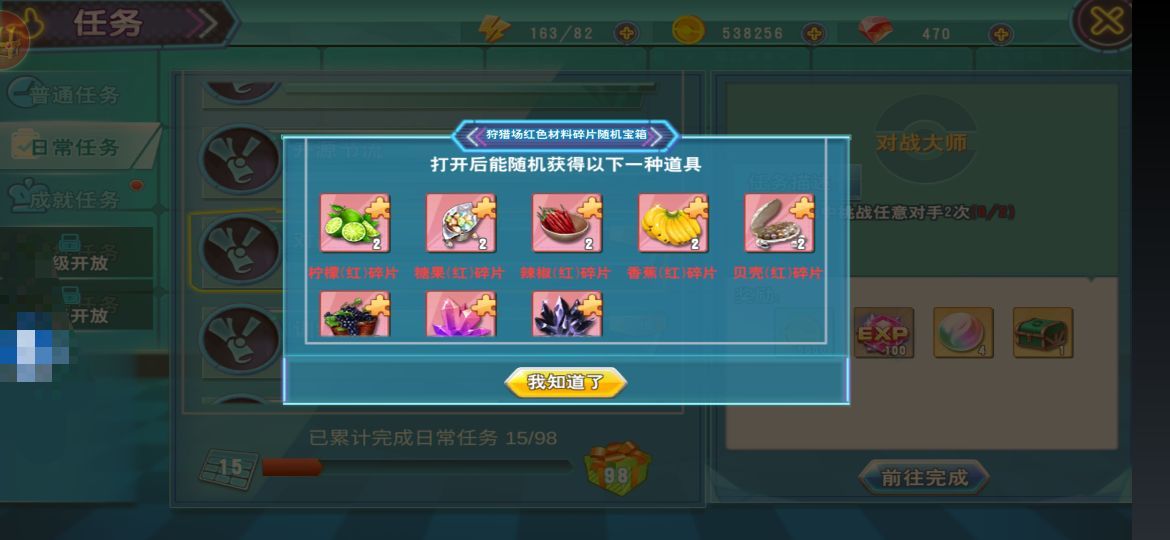 在竞技场中挑战任意对手2次,可以获得mega进化石、狩猎场红色材料碎片宝箱。