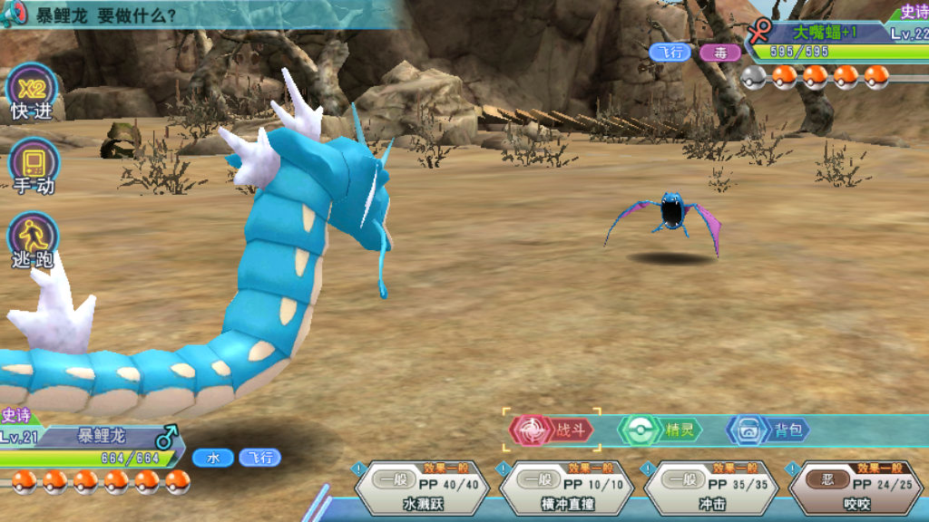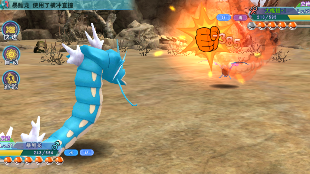 值得注意的是,在道馆当中的敌人,往往会使用三只以上的小精灵和玩家交手。所以无论如何,玩家一定要保证暴鲤龙先发制人的攻击优势,一旦让对手反扑的话,后果也十分严重。这里就需要玩家多多的使用“破坏死光”去压制敌人的行动能力了。