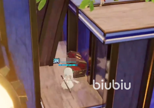 之后大家需要前往该区域最大的一颗树下,来到树下以后靠近树的位置看到一个秋千,来到秋千的后方在这里可以拿到第十二个收集物。然后来到树的右侧面这里可以看到一个草丛,于草丛互动就能拿到第十三个收集物。这收集物拿到后需要往平台最边缘走,走到边缘和下方的房屋重合的位置可以看到一只飞虫,捕捉这只飞虫就能找到第十四个收集物。