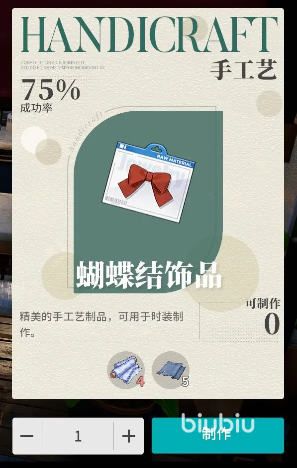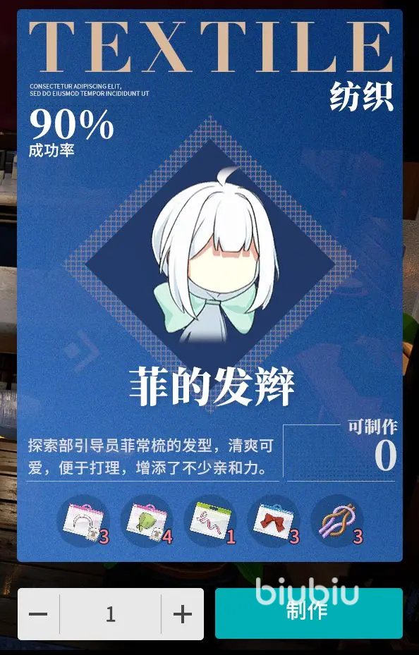 3、家具制造,这是最后一个生活技能,虽然说角色突破运用不到,但是可以用来清除BP,另外有些好用的家具和工艺品是挂钩的,甚至1个家具可能就需要8-10个工艺品的产物,有些家具需要的材料,在地图中是可以采集到的,比如木头石头之类的,可以打造一个温馨舒适的小家。
