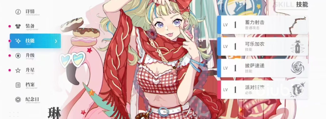 第2个技能是朝着面前的敌人丢出旋转的披萨饼,造成远程打击属性伤害,披萨饼在命中敌方目标时会进行分裂,分裂成小的披萨饼命中目标同样会造成打击属性伤害,分裂伤害大概是技能伤害的1/2。必杀技派对狂欢,琳带着一个巨大的甜甜圈登场,能够堆面前的敌人进行碰撞攻击,造成伤害后将其推到一边。当甜甜圈撞击到墙壁时,还可以对范围内敌人造成伤害。在移动期间,通过点击普攻按键,可将甜甜圈抛起然后落地对范围内敌人造成伤害。在推动甜甜圈移动期间,琳受到的伤害降低。