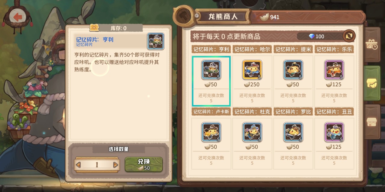 龙熊商店由于位置偏僻,常常被不熟悉游戏的萌新忽视,事实上龙熊商店是平民党高品质咔叽碎片来源。龙熊商店中售有蓝色、紫色以及金色咔叽碎片,每天更新商品栏,结算货币是蛋壳。
