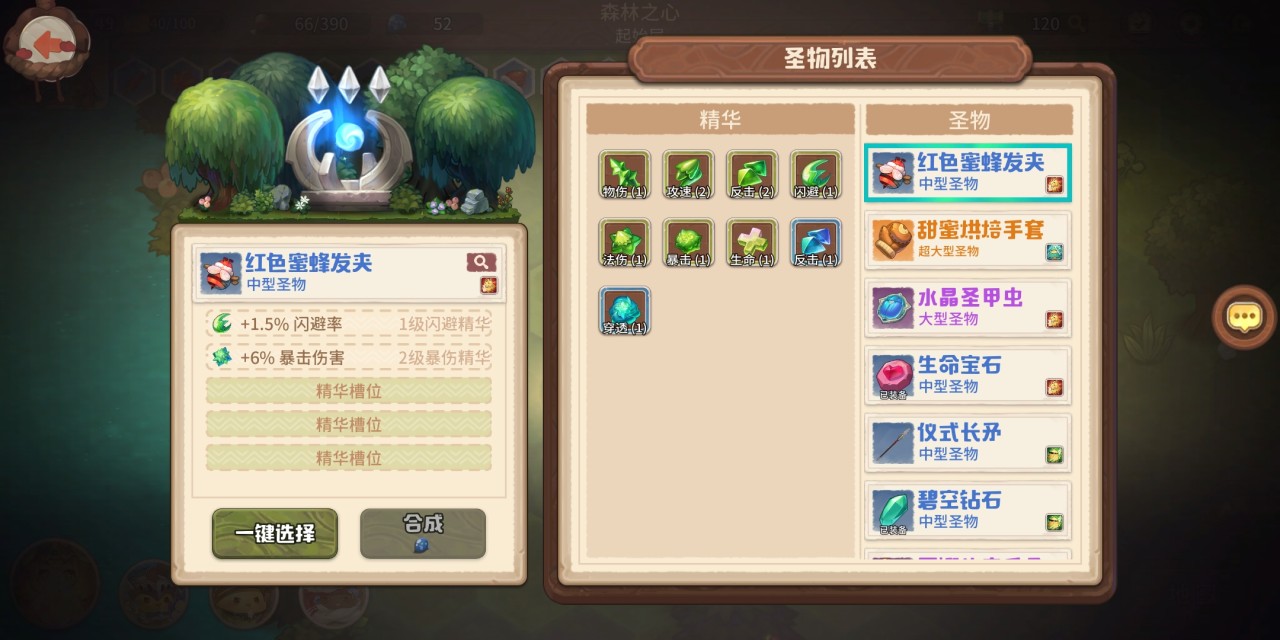 任务是副本特别是地下城玩法的重要组成部分,玩家在击败各层最终boss后可挑选任意圣物,生物能提供若干增益条目。根据品质高低圣物最多可镶嵌6个圣物精华,圣物精华会在击败怪物后随机掉落,当然也可消耗灵魂能量在杂货店购买,而攻速精华只要镶嵌在槽位上就能立刻生效。