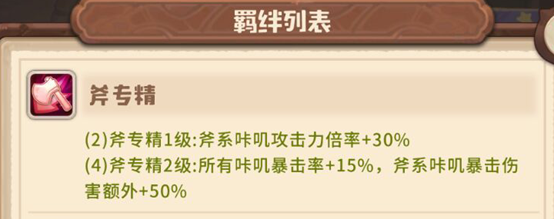 斧专精:四个具有很高的上限,不过目前版本斧头帮不适用,前期可是搭配两个斧专精来过度,效果如下图。