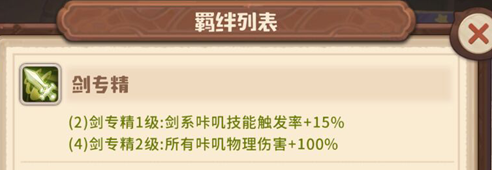 大多数咔叽都会拥有一个信仰和一个武器的羁绊,比如“剑专精”、“海洋女神”等等,少数咔叽会拥有多个信仰,当我们的探险小队中拥有相对应数量羁绊的咔叽后,就可激活羁绊效果了。