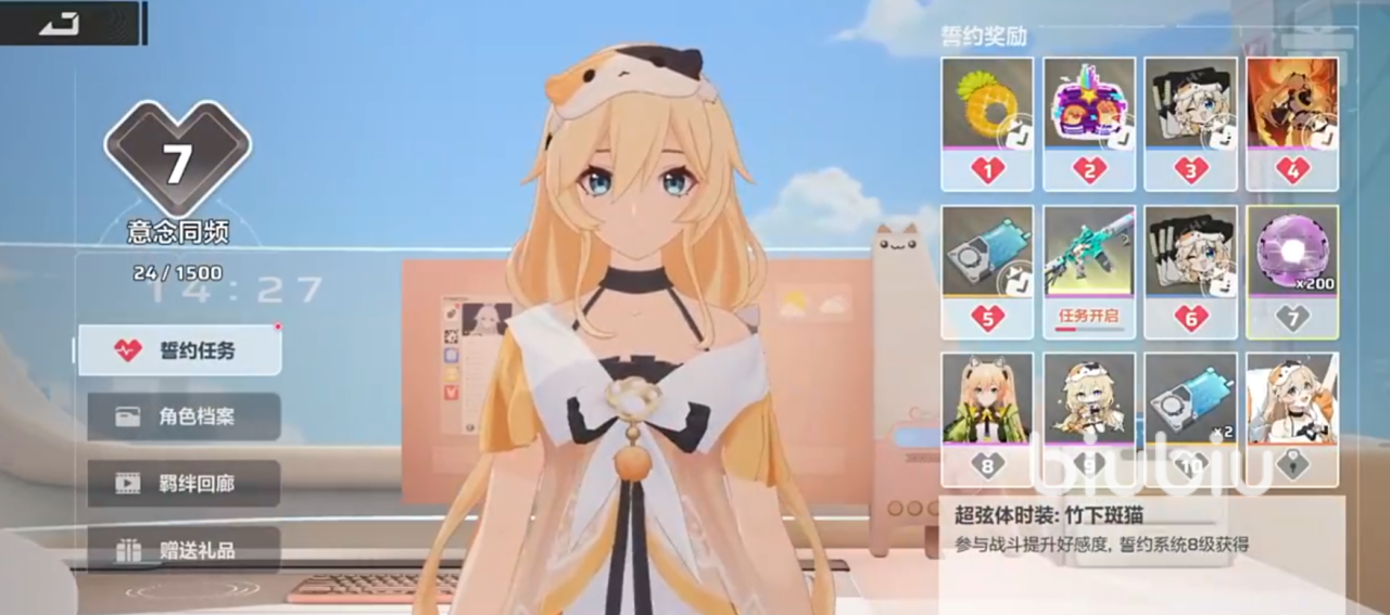 礼物涉及到誓约系统,该系统可以让玩家随意选择一个喜欢的角色,当做自己的誓约对象,赠送礼物可以增加她的好感度,而伴随好感度的提升,不仅会解锁角色剧情、互动语音等,还会有对应等级的奖励,若想要更换,可以在主界面右下角点击导航按钮进入到卡丘通讯界面,在该界面的导航标签页可以随时切换誓约对象。