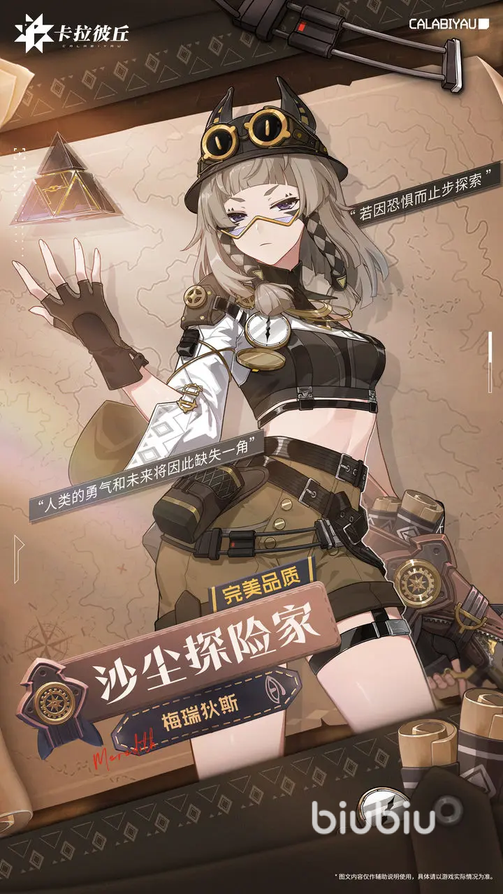 她是该阵营的侦察角色,可使用绝对理性对数据进行分析,擅长使用金字塔的装置制造沙暴,具备了视野遮蔽,减速对手。生命值削减等等效果。被动”时零沙环”,处于滞空状态下,当她进入到技能瞄准,武器瞄准,或战术瞄准状态中,自身的下落速度会削弱。战术技释放,向敌方所在的方向射出弦能球体,在落地处打造一片能完全遮住视野的,环状黄沙领域。