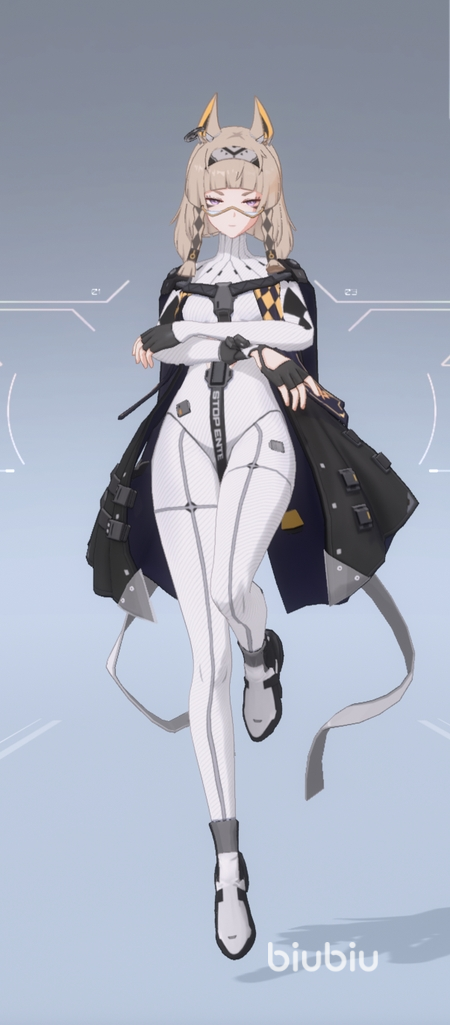 她是剪刀手阵营的角色,使用”隼”这把自动步枪,擅长使用沙尘暴,同时也能利用技能招式达到良好的控场效果,是组队中非常好用的控制型角色。她拥有一个被动效果,当自己处于滞空状态下,她进入仅能瞄准,武器或战术瞄准时,整体下落的速度会被降低。