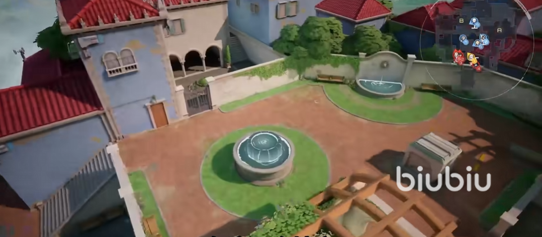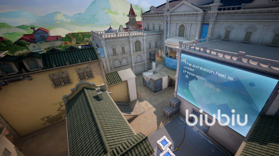 风曳镇这个地图是目前比较大的,对于防守方来说不是很友好。主要给大家讲一下这里的一些防守的思路,首先就是B点,这里是比较重要的防守位置,这里的屋檐和雨棚数量比较多,有飞行能力的角色能直接进来。